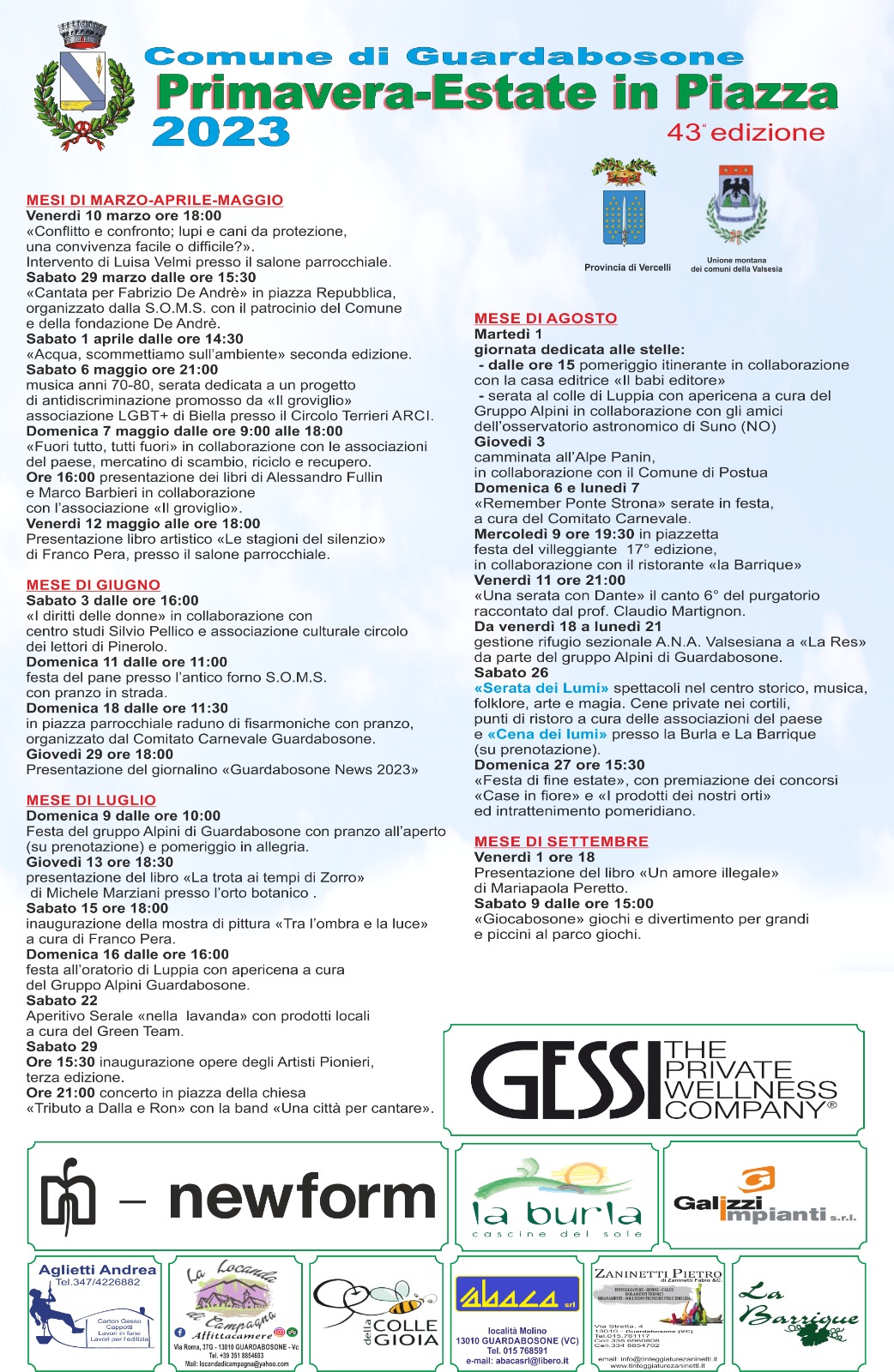 Presentiamo il calendario con tutti gli eventi della primavera / estate 2023. Non mancate di partecipare a tutte le iniziative !!