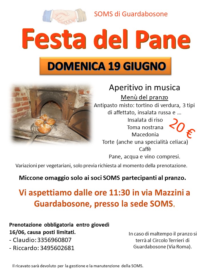 Il pane dell'antico forno di Guardabosone sarà sfornato domenica 19 giugno a partire dalle ore 11:30.
