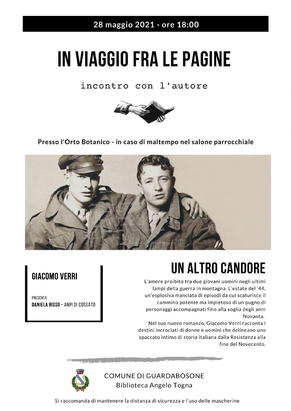 L'incontro con Giacomo Verri, che era stato rimandato l'anno scorso a causa delle misure anti contagio, inaugura gli incontri con autori di libri che saranno ospitati nel nostro comune.