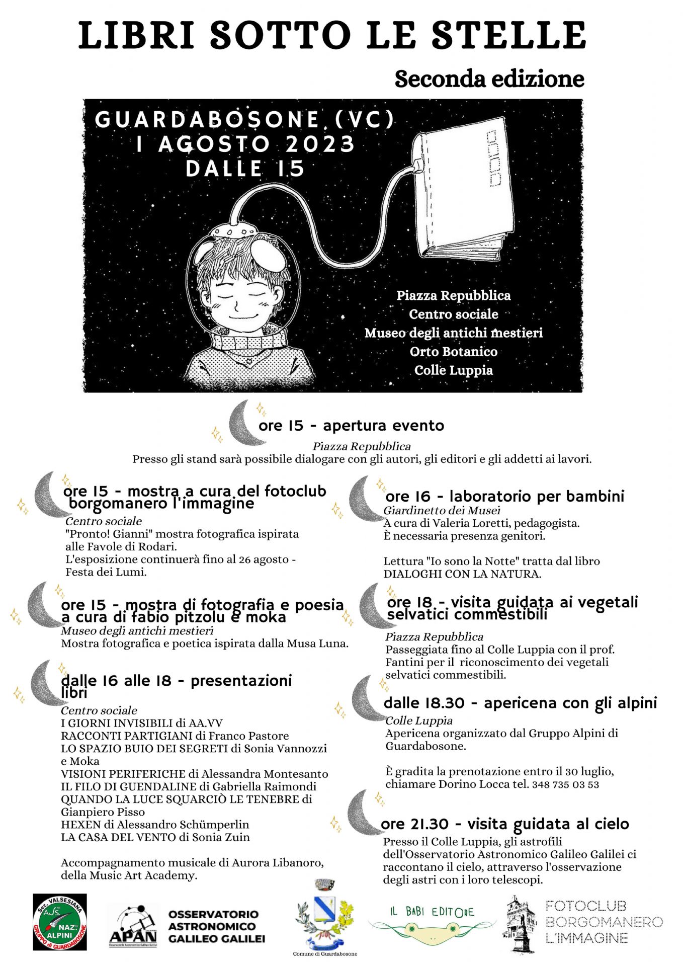 Presentazioni di libri, mostre, laboratori per bambini, visite al bosco e al cielo... il tutto martedì 1 Agosto a Guardabosone ! mentre la mostra su Gianni Rodari si protrarrà fino al 26 Agosto