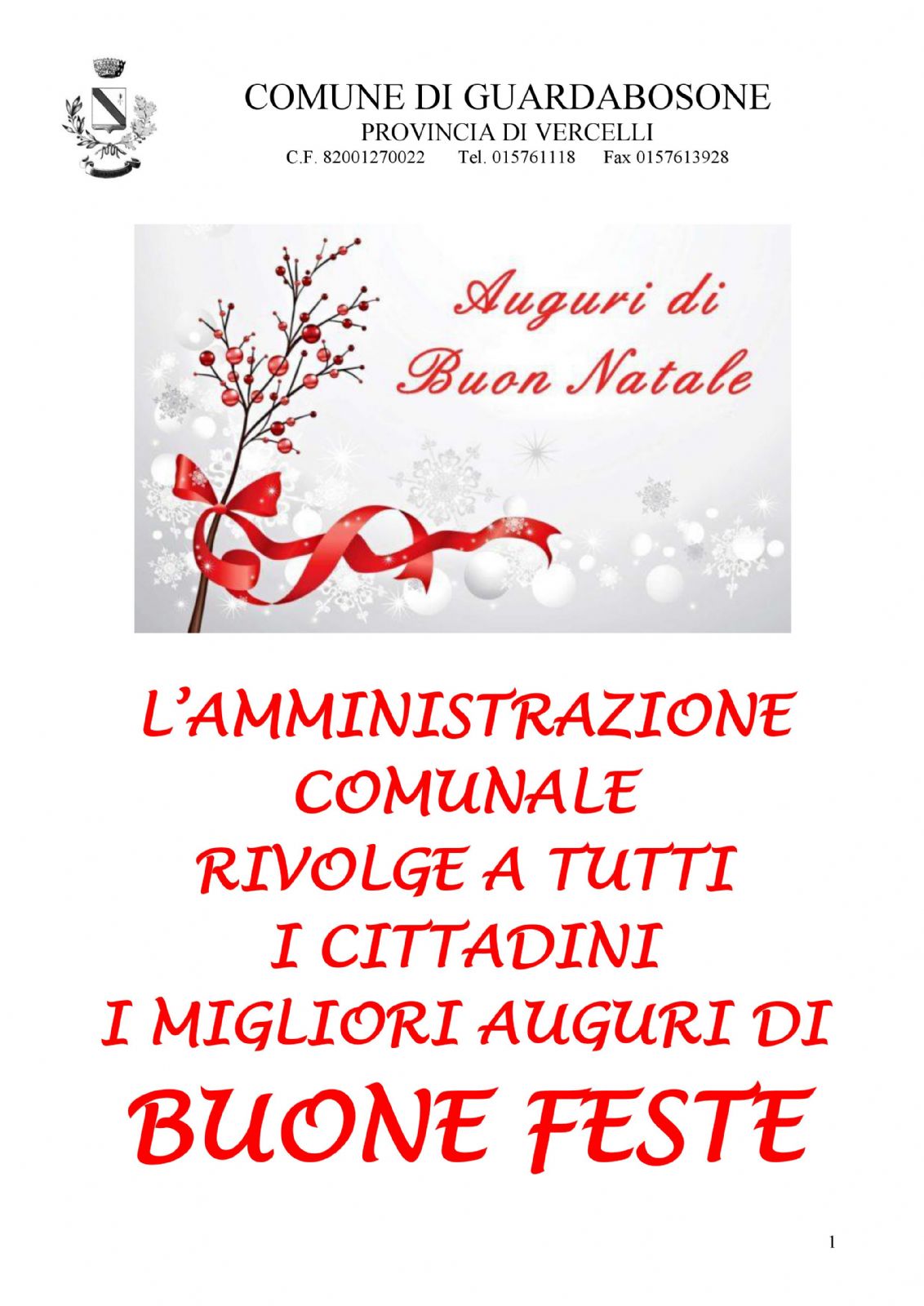 L'amministrazione comunale rivolge a tutti i cittadini i migliori auguri di buone feste